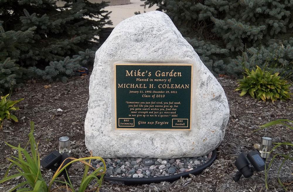 Natural stone boulder with recessed bronze plaque